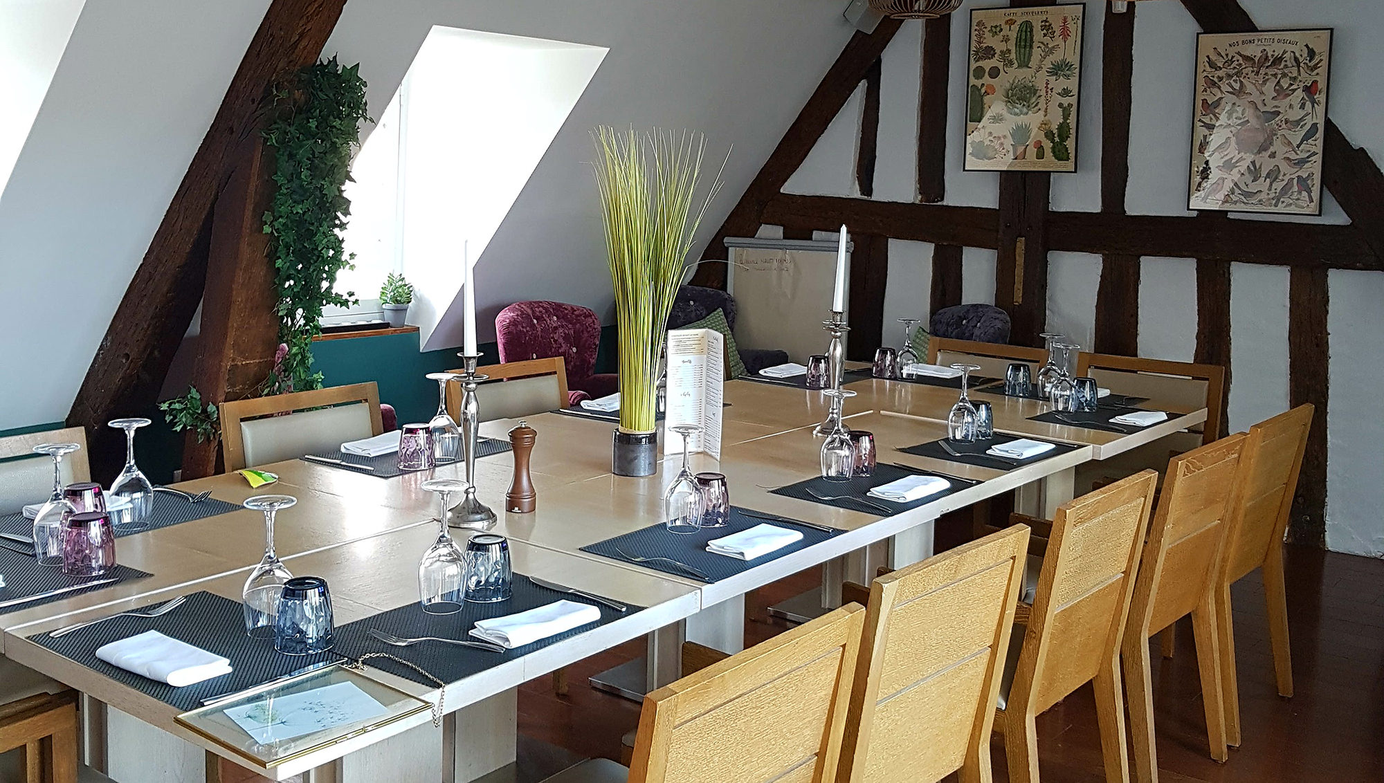 Au 2ème étage du restaurant, cet espace est à l’abri des regards. Avec sa propre terrasse et sa déco « nature » elle accueille aussi bien vos réunions de travail grâce à son écran de télévision que vos soirées foot entre amis.